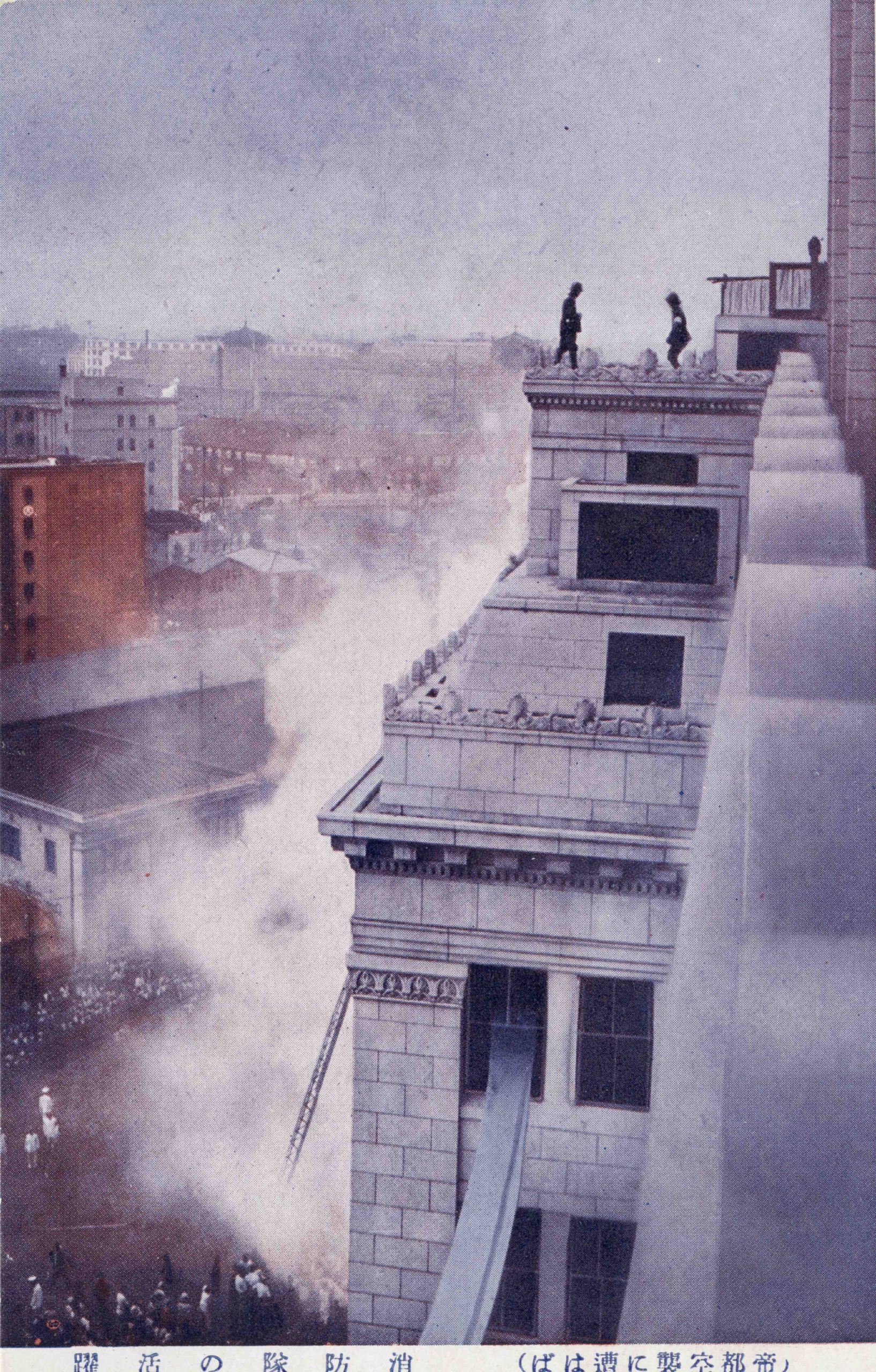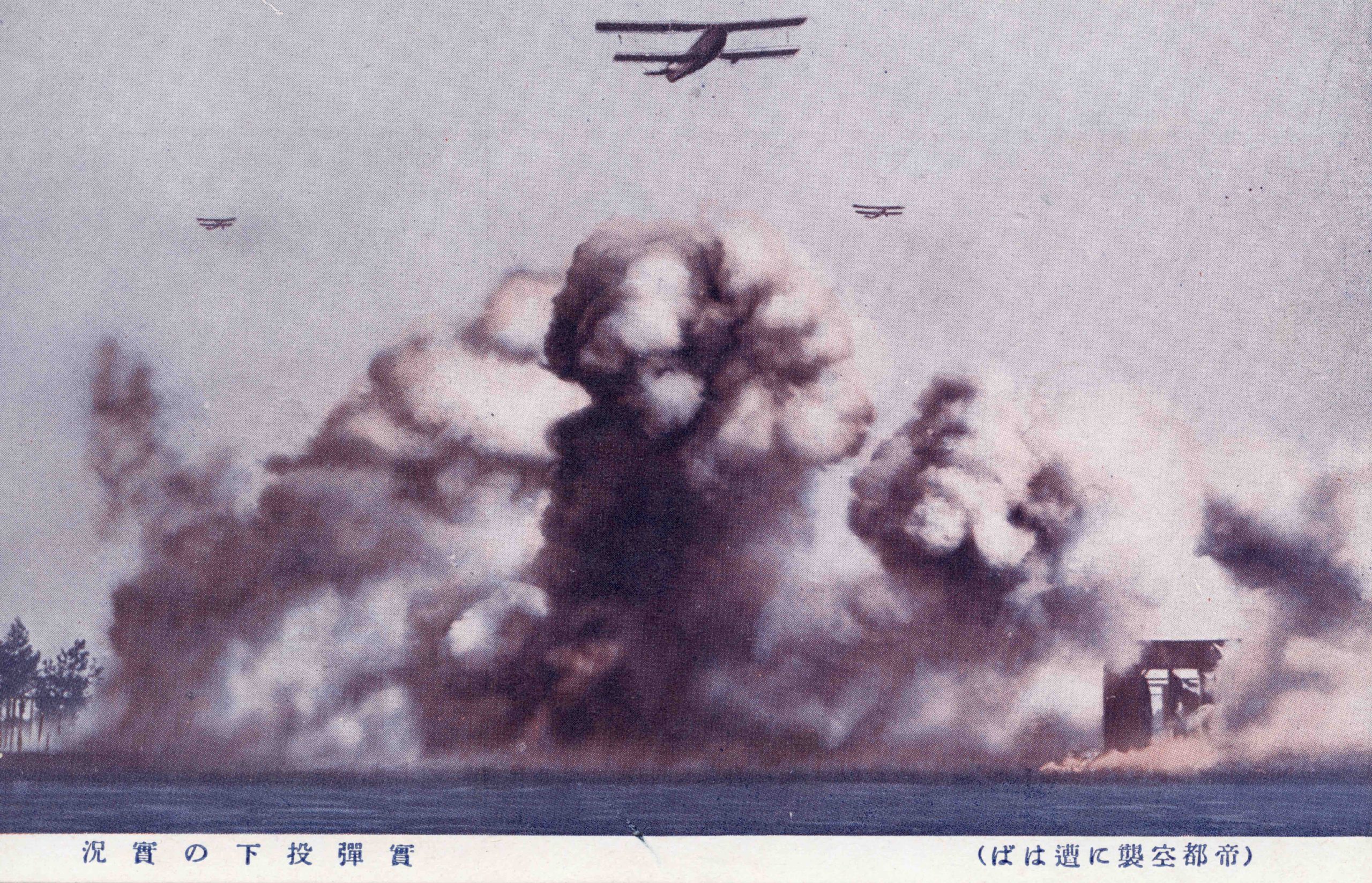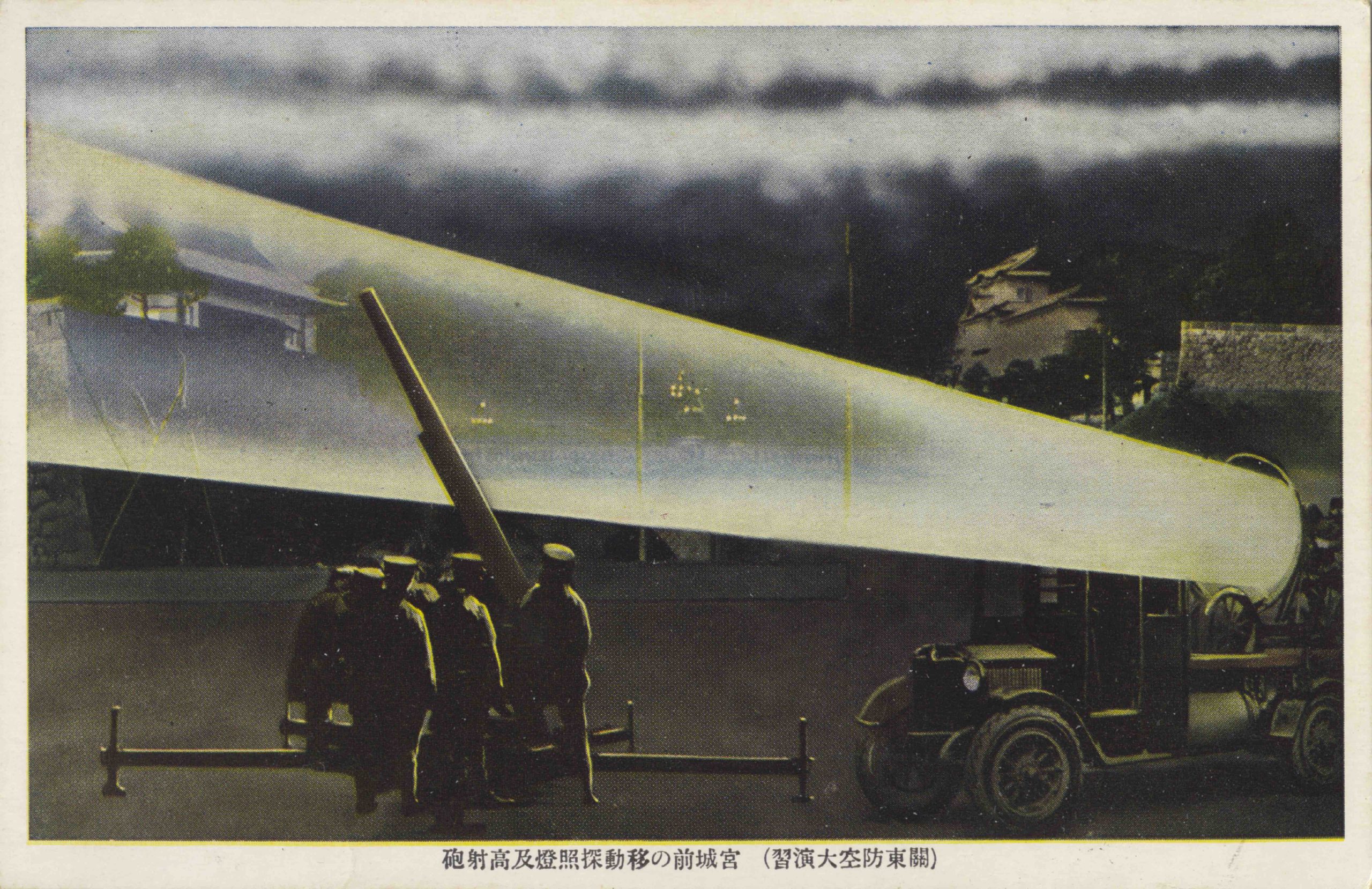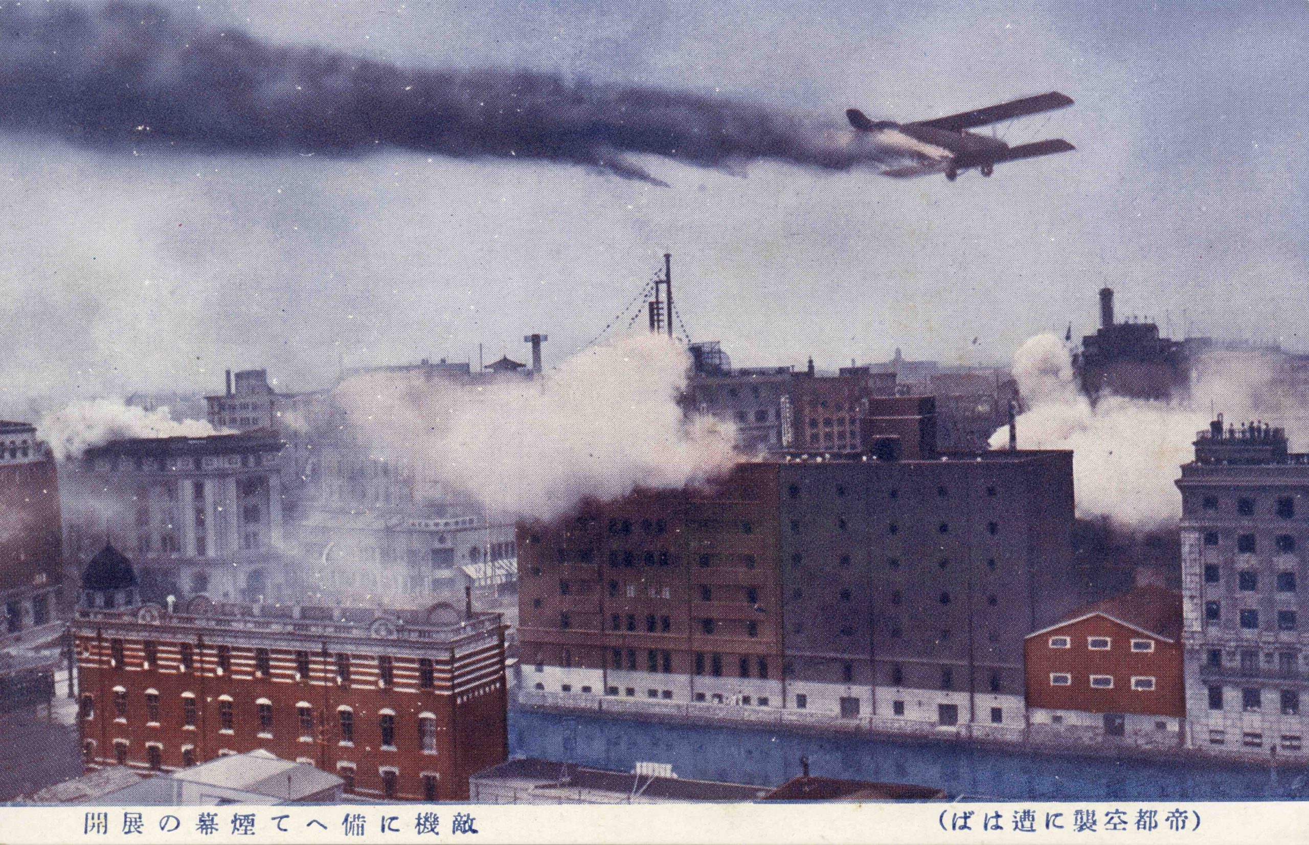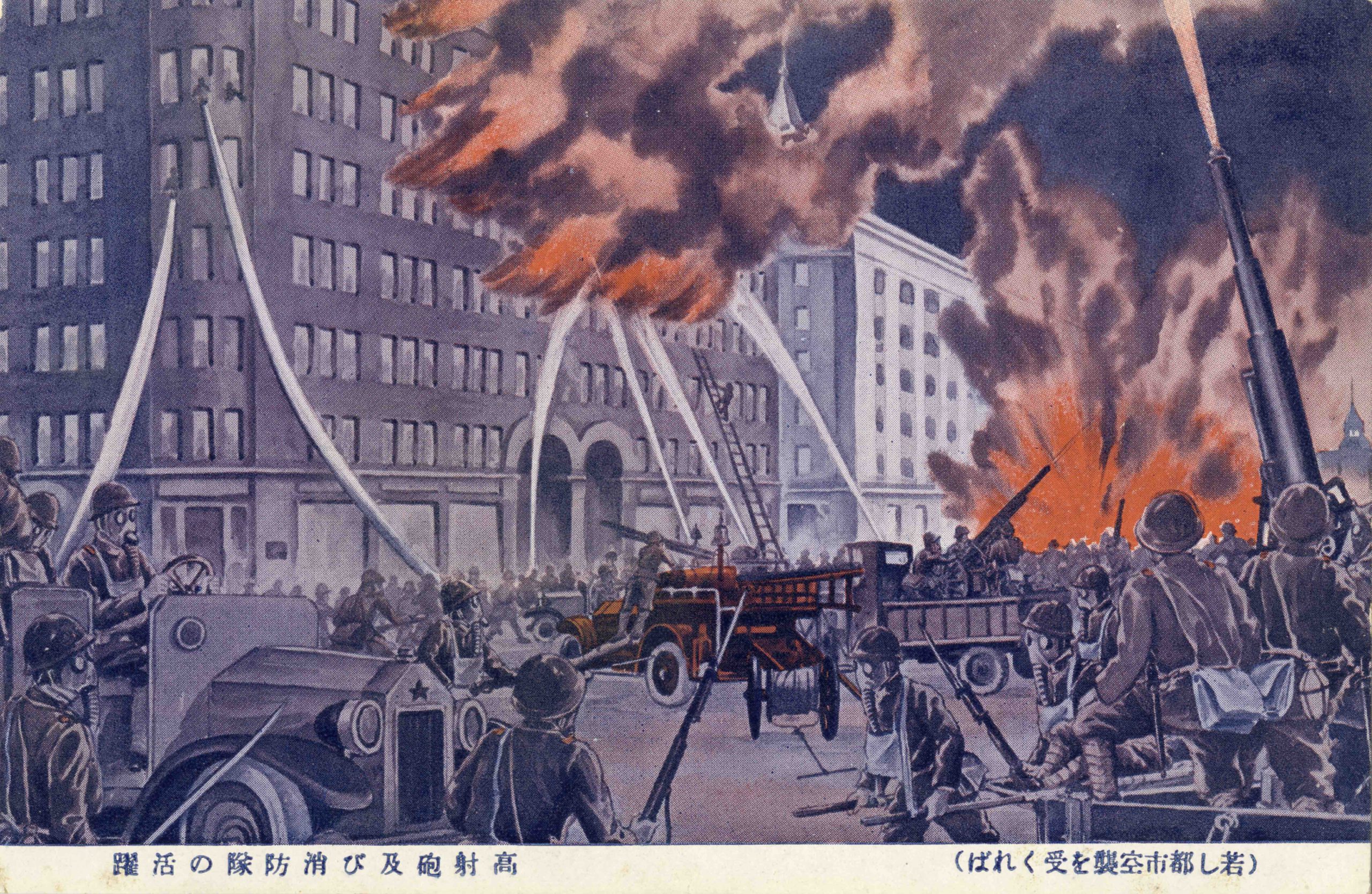 Tokyo held a major regional defense exercise from August 9 to 11, 1933, less than six months after Japan withdrew from the League of Nations to protest being officially censured for its activities in Manchuria. The event was billed in the press as fundamentally different from previous exercises because it would simulate āreal battleā conditions employing both military and civilian defense corps. In conjunction with these drills, entrepreneurs and official organizations issued sets of commemorative postcards employing dramatic aesthetics and catering to a burgeoning consumer market for bÅkÅ« memorabilia as collectibles. Below I will expand on three sets of postcards issued as souvenirs for the 1933 Great KantÅ Air Defense Drills and after. These visual souvenirs depict a bÅkÅ« visual canon that appeared widely across all media genres. As part of the larger campaigns for air defense itself, they tapped into the exciting, and often darkly enticing, visual rhetoric of national defense by deploying what I have termed its āobjects of attractionā: airplanes, gas masks, bombs, and all the wondrous weapons of war.