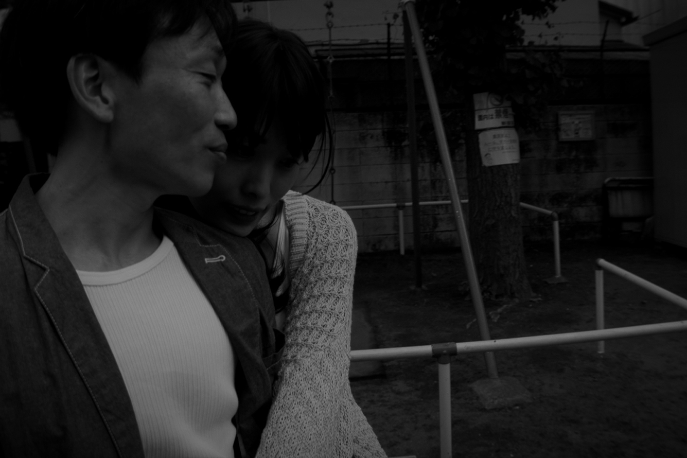 Funahashi: Exactly. Our brains have been contaminated by pornographic videos and also by anime and manga. If you look at the poster for the film, it shows Saki—a young woman—looking troubled, standing next to an older man whose face you cannot see. And the poster has the line, “I cannot tell this suffering to anybody”(Kono kurushimi wa darenimo ienai).